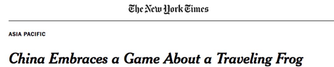 美國《紐約時報》以“《旅行青蛙》風(fēng)靡中國”為標(biāo)題,分析了中國年輕人沉迷養(yǎng)蛙的原因。報道稱,這款游戲和撫養(yǎng)孩子聯(lián)系密切,玩家要在青蛙出門旅行前為它準(zhǔn)備午餐。