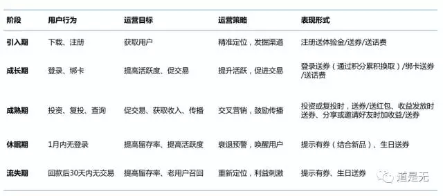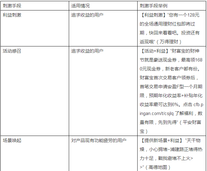 運營手段多種多樣,本文所舉例證大多是基于“利益激勵”型案例,花費較高,收效也比較明顯,包括送體驗金、送券、送話費、分享加收益等。除此之外,運營手段還包括推送、內容運營、社群運營等手段,這些手段在運營中也同樣重要。