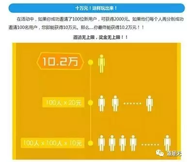 基本的邏輯是用戶邀請新用戶進來,不但可以獲得獎勵,而且新用戶再邀請其他的新用戶進入平臺,還能繼續分得獎勵金。