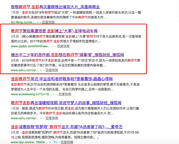 如果仔細(xì)去看金彭在整個教師節(jié)活動當(dāng)中的流程,可以發(fā)現(xiàn)一個問題,他們幾乎沒有出現(xiàn)預(yù)熱的階段,反而是幾個金彭活動泄密事件的曝光貼,成為被各種媒體主推的內(nèi)容。也就是說, 在這次的活動宣傳當(dāng)中金彭索性就把這次的方案泄密的“危機公關(guān)”,硬生生變成為活動的預(yù)熱。