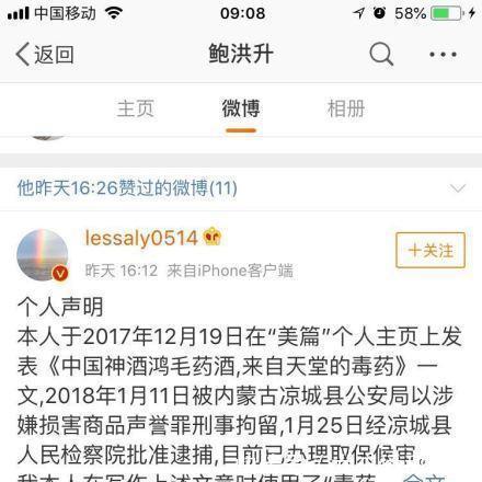 當日17時,鴻茅藥酒公司在微博上發表聲明,經公司研究決定接受譚秦東本人所做的致歉聲明,并向涼城縣公安局撤回報案并涼城縣人民法院撤回侵權訴訟。