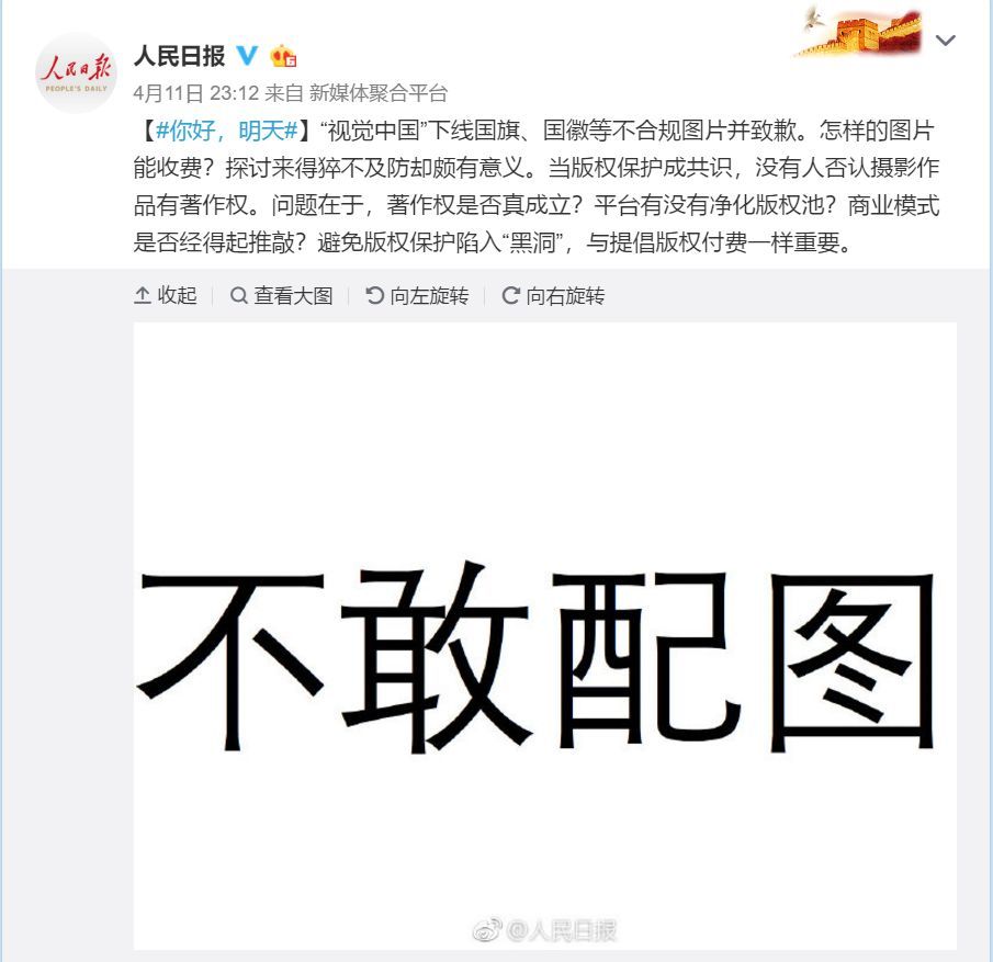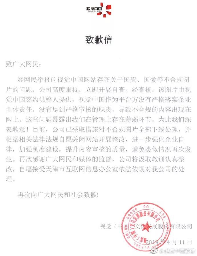 在面對國旗、國徽被納入自家版權如此嚴重的錯誤時,視覺中國第一時間做的不是承認自身的錯誤,而是把第一責任推給“供稿人”,自己退而成為“第二責任人”,并且在最重要的第三份聲明中,依舊堅持此觀點,著實讓人失望。