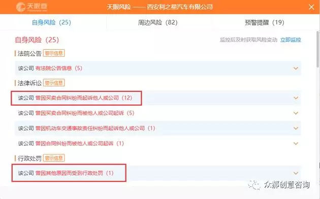 據天眼風險數據顯示, 從2015年至2018年,有關“西安利之星汽車有限公司”的法律訴訟達到23起,多為買賣合同糾紛。