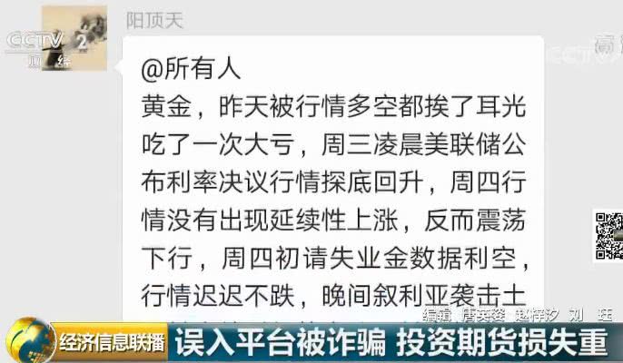 沒幾天,陳老師在群里推薦大家做黃金期貨交易。不久后群里有十幾個人留言說自己跟著陳老師炒黃金期貨已經賺了不少錢。何先生心動不已,決定跟著陳老師進行期貨投資,他將83萬元存入交易平臺,然后聽從陳老師的建議進行交易,沒想到幾個月后虧損近70萬元。
