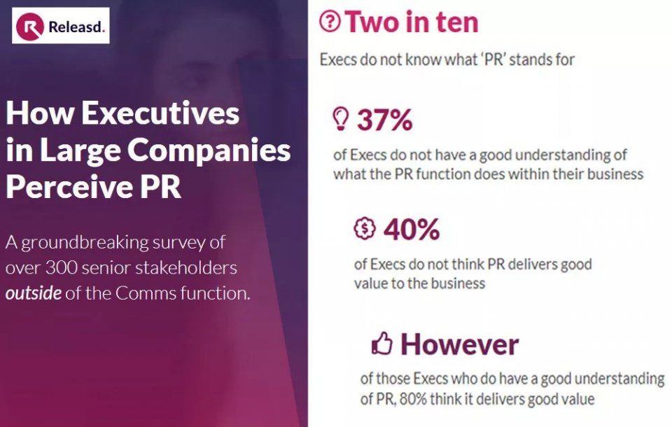近日, Releasd 發布的一項針對超過300名非公關傳播行業的公司高管的調查顯示,20%的人不知道”Public Relations”代表的是什么,40%的高管不認為公關為他們的業務帶來了良好的價值。