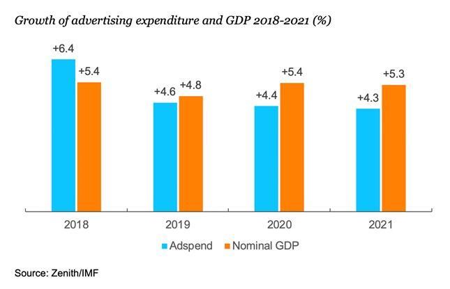 不過,隨著市場日趨成熟,數字廣告的總體增長放慢。2018年,數字廣告增長了17%,實力媒體預測這一數字將在2019年降至12%,并于2021年進一步下降到9%。