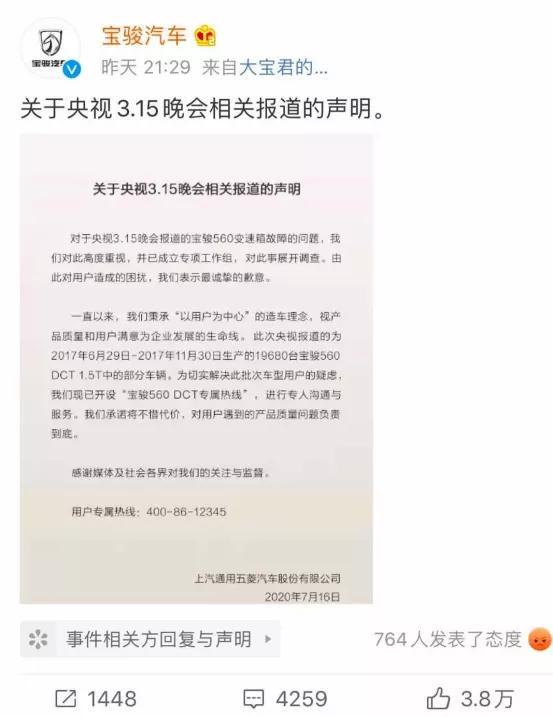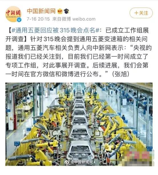 今年3·15晚會上,上汽通用五菱寶駿汽車是因“沒完沒了的變速箱故障”被央視曝光的。