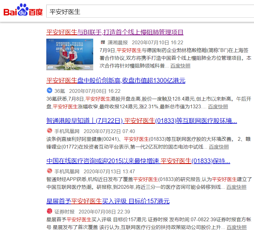 從本菜雞公關(guān)搜集到的新聞來看,平安好醫(yī)生采取的是新聞通稿壓制的方式,即試圖通過發(fā)布日常企業(yè)動態(tài)的稿件,讓負面新聞在搜索引擎上下沉,從而達到掩蓋負面的目的。