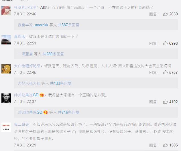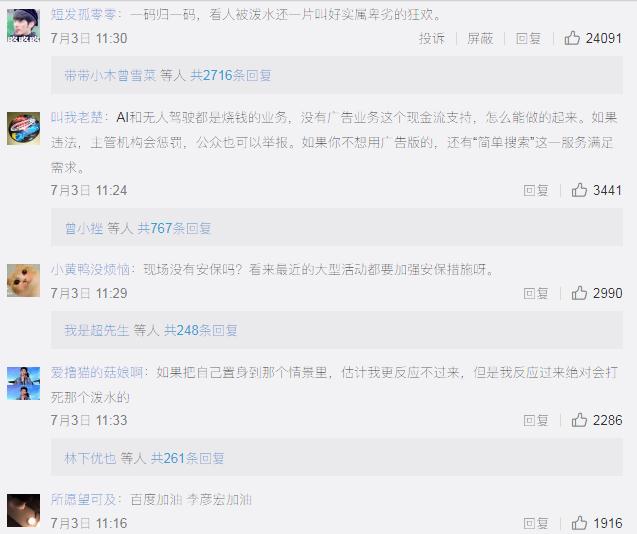 在百度第一次回應時,微博評論證明積極的居多,大多數持同情李彥宏,反對潑水人的態度,當然也是因為李彥宏在遭遇潑水時冷靜有風度的反應獲得不少肯定。