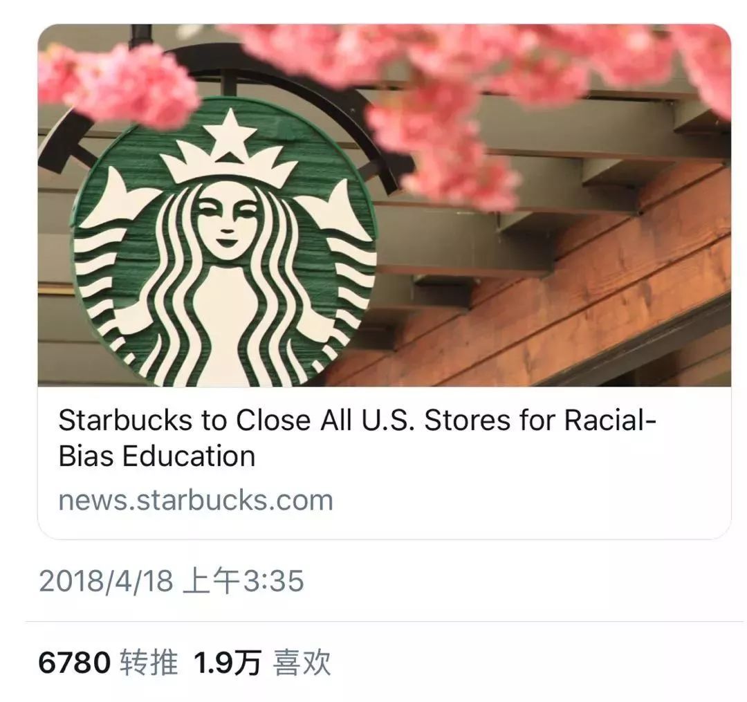 之后,星巴克緊接著宣布:“將在下個月關閉美國境內的8000家門店,對旗下17.5萬名員工進行一下午的‘反種族歧視培訓’”。