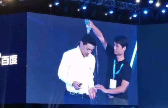 7月3日,2019百度AI開發者大會如期舉行。不過,今年火爆的開發者大會現場,發生了尷尬的一幕。百度公司創始人李彥宏上臺,在介紹完小度“雙全工無喚醒功能”后,正在解讀百度自動泊車時,一位不明人士走到臺上,來到李彥宏身邊,將一瓶礦泉水直直地從李彥宏頭頂倒下。李彥宏瞬間完全濕身,此時大會剛剛舉行了10分鐘左右。“What’s your problem?”李彥宏在被潑水后飆出了一句英文。不過,見過各種大場面的李彥宏還是迅速穩住了自己。之后大會繼續。李彥宏一邊用餐巾紙擦去面上的水漬,一邊又說了一句,“就像人工智能到來的路上,總會遇到一些困難”。此后,李彥宏一直穿著濕透的衣服,演講了超過35分鐘。