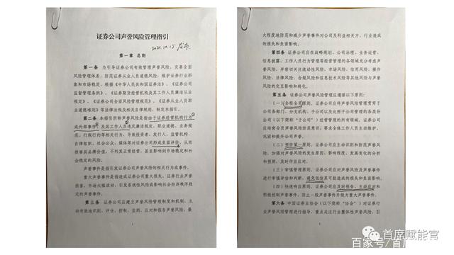 一是明確了聲譽風險管理的基本原則,全面定義聲譽風險,將證券經營機構行為,及其工作人員違反廉潔自律規定、職業道德、業務規范、行規行約等相關行為形成的聲譽風險納入管理范疇;