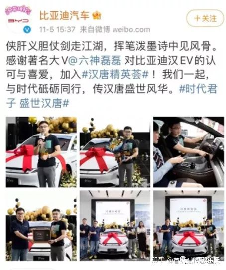 【事件梗概】2021年11月5日,比亞迪汽車(chē)通過(guò)微博宣布“六神磊磊”加入漢唐精英薈,并感謝著名大V對(duì)比亞迪漢EV的認(rèn)可和喜愛(ài)。