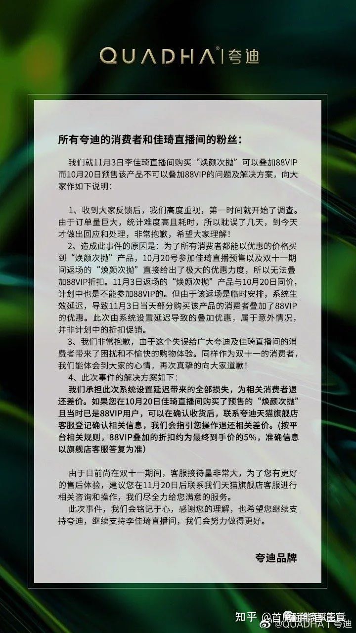 【賦能簡(jiǎn)評(píng)】有媒體將歐萊雅本次事件定義為2021年雙十一最大的“翻車(chē)”,甚至已經(jīng)預(yù)測(cè),此事會(huì)提前把歐萊雅送上下一年的“315”晚會(huì)。事件焦灼過(guò)程中,有一種聲音引起了首席賦能官的注意,大概意思是,歐萊雅是一家如何大而牛的公司,兩個(gè)所謂的網(wǎng)紅主播,即便有一些影響力,能奈之何?而首席賦能官想說(shuō)的是,企業(yè)不管如何大而牛,都不要拿自己的信用當(dāng)兒戲,更不能錯(cuò)判了越發(fā)積極主動(dòng)、強(qiáng)力作為的監(jiān)管形勢(shì)。否則,更大的危機(jī)就在不遠(yuǎn)處。事實(shí)上,2021年的雙十一,像歐萊雅這樣因價(jià)格問(wèn)題被質(zhì)疑的品牌并不只1個(gè),比如華熙生物旗下的夸迪,也遇到了類似問(wèn)題。但是,夸迪迅速就回應(yīng)“退還差價(jià)”。這么一對(duì)比,高下立現(xiàn)。