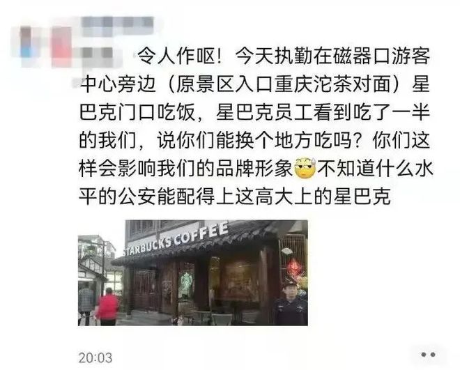 一條來自執(zhí)勤民警的朋友圈將重慶磁器口星巴克門店推上了輿論的風(fēng)口浪尖。