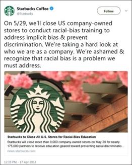 這不是第一次星巴克員工和顧客的沖突。2018年,美國兩名非裔男子在星巴克店內(nèi)借用洗手間遭到拒絕并被惡意報警,此事引起一連串示威行動,星巴克官方關(guān)閉多家門店進(jìn)行“反種族偏見培訓(xùn)”。