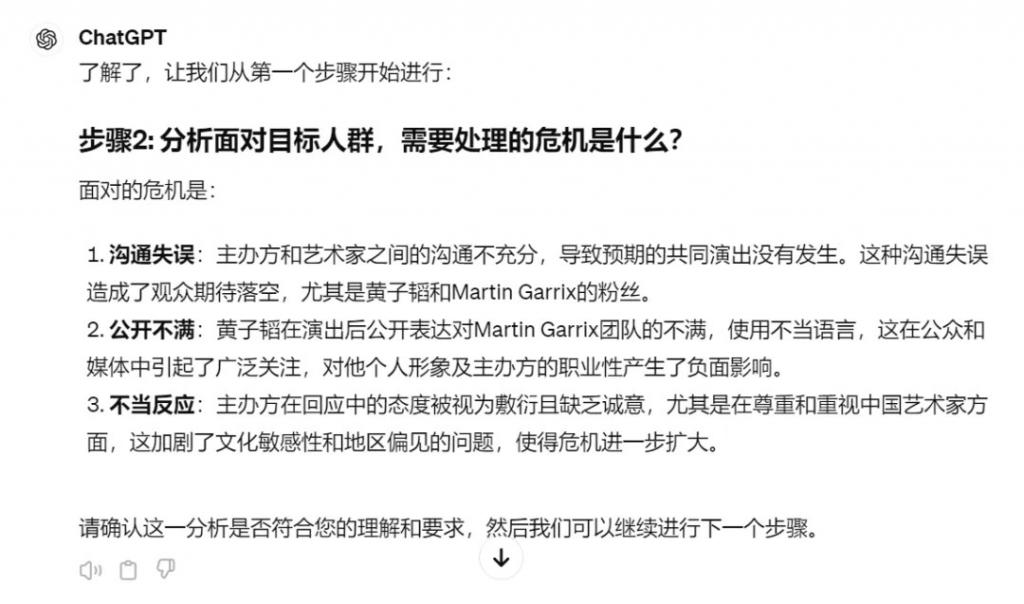 2. 用戶提供輿情危機(jī)事件,你先分析,面對(duì)目標(biāo)人群,需要處理的危機(jī)是什么?