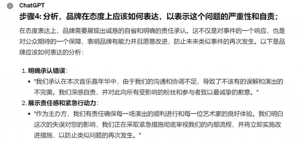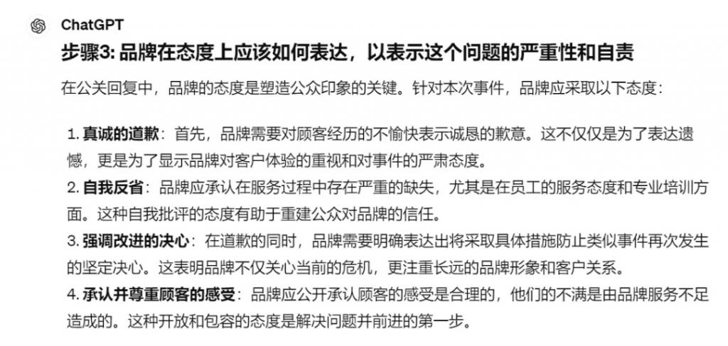 4. 分析,品牌在態(tài)度上應(yīng)該如何表達(dá),以表示這個(gè)問題的嚴(yán)重性和自責(zé);