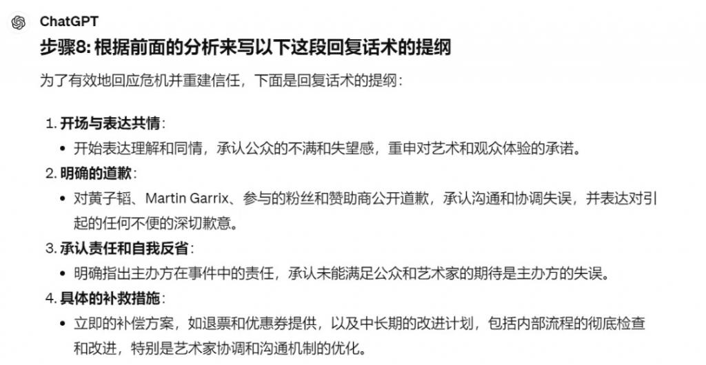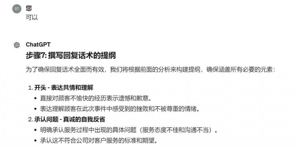 9. 根據(jù)前面的分析以及步驟 8 的提綱,寫一段回復(fù)話術(shù)。