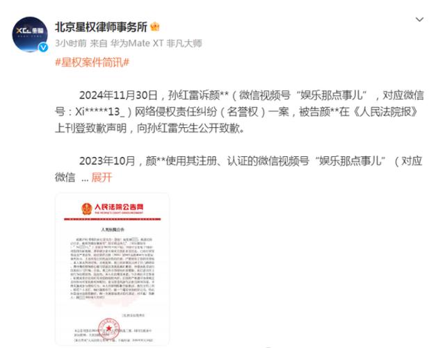 孫紅雷和他團隊對這些謠言非常不滿。他們第一時間就發了聲明辟謠,而且還找了律師,準備用法律維護自己的權益。12月3日,北京星權律師事務所在社交平臺上公布審理結果,法院審理后發現,顏某發的視頻里說的那些“孫紅雷跑了”、“轉移上億資產”、“定居國外”都是捏造事實、造謠、散布虛假信息。這些視頻傳得到處都是,讓大家都對孫紅雷有了誤解,對他的社會評價也有不良的影響。法院認定,顏某的話是在誹謗孫紅雷,侵犯了他的名譽權。
